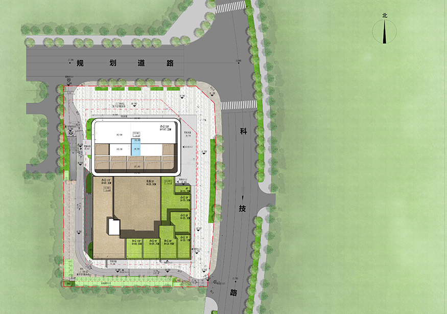 建設(shè)用地面積為 8788 ㎡,建筑分為地上辦公三十三層,高度為 147.25 米,地下為二層地下室。總建筑面積為 77796.11 ㎡ ,其中計容建筑面積52728 ㎡,不計容建筑面積 25068.11 ㎡??紤]基地的用地性質(zhì)及城市規(guī)劃的空間要求,建筑采用退臺式裙房及超高層塔樓組合布局方式,強(qiáng)調(diào)高層塔樓開敞及景觀視線的通透感。下部設(shè)商業(yè)及服務(wù)空間,便于靈活組合空間,為提高觀景率,建筑采用方正,大開間退臺式平面,有利于觀景和通風(fēng)等多方面的要求。建筑在最大限度的保證南北朝向的同時,避免基地內(nèi)高層建筑與相鄰建筑的視線干擾對視,適當(dāng)拉開間距以降低壓抑感。