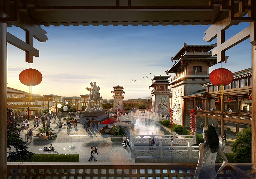 ? ? 文化商業(yè)街的設(shè)計頗具匠心,從入口處開始,至文化商業(yè)街出口處結(jié)束,整個用關(guān)羽輝煌起伏的一生為時間線進(jìn)行貫穿。如果說整條街區(qū)是關(guān)羽在世生而仁、仁而勇、勇而義、義而忠的再現(xiàn),那么從街區(qū)的出口處就是關(guān)羽侯而王、王而帝、帝而圣、圣而天文化升華的開始。讓體驗者通過關(guān)公精神,體驗現(xiàn)代旅游綜合商業(yè)區(qū),建設(shè)一個集餐飲休閑、旅游度假為一體的傳統(tǒng)古典園林式的商業(yè)綜合體。